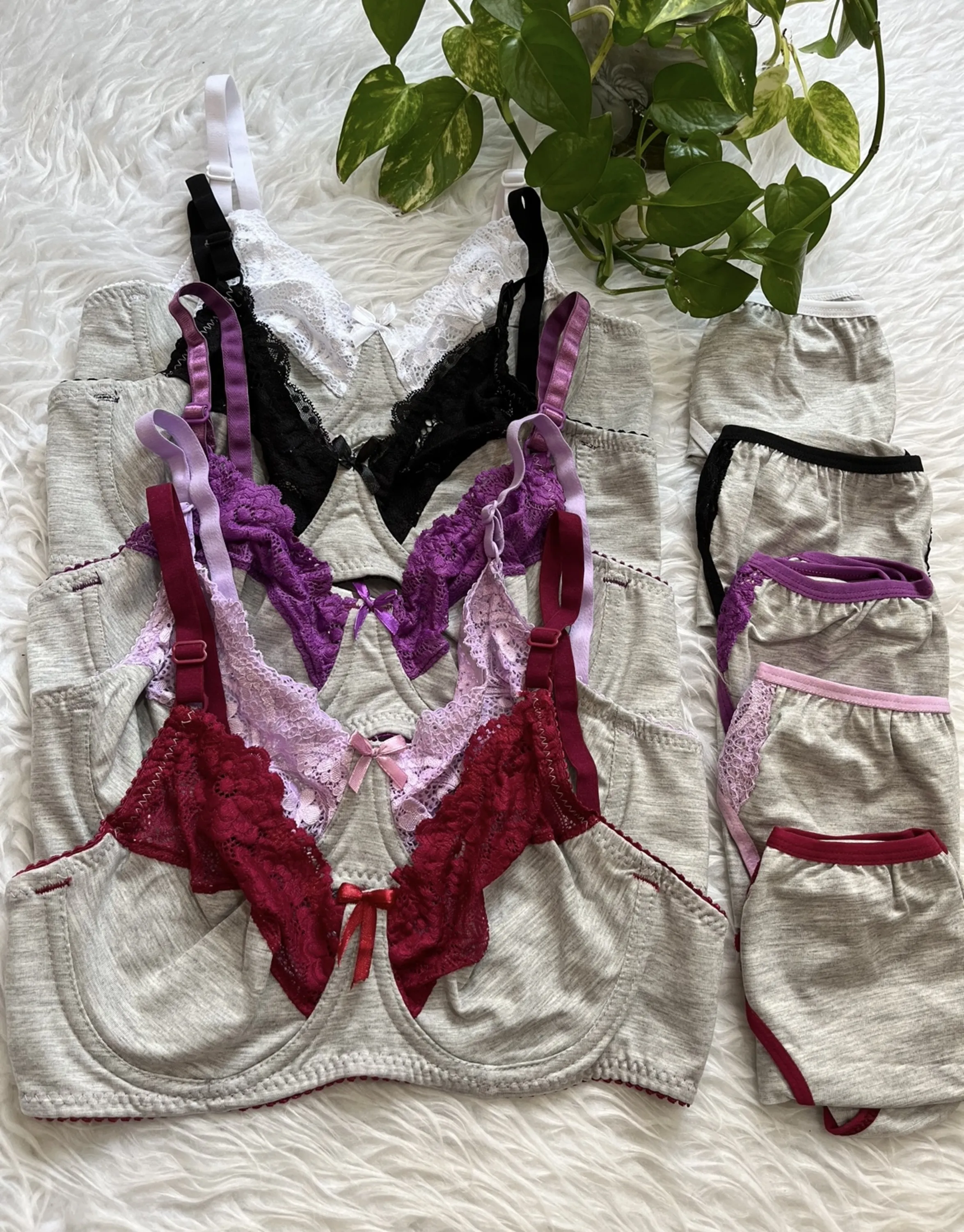 ست شورت وسوتین نخ وگیپور