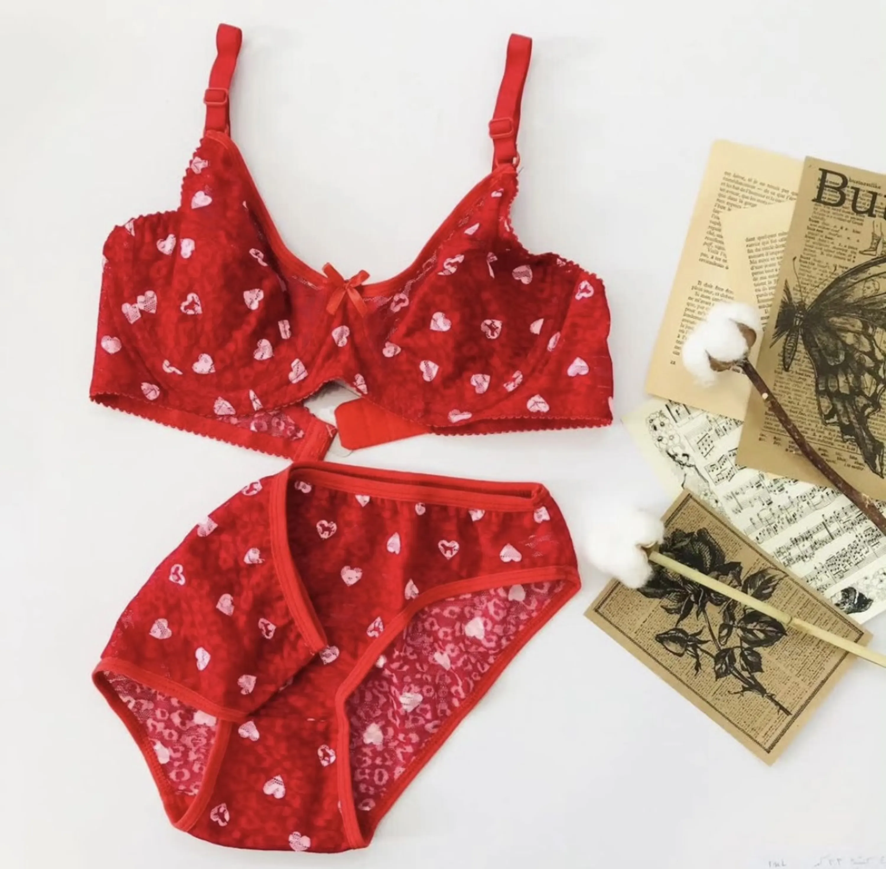 ست شورت و سوتین قرمز قلبی